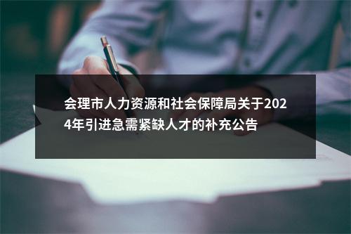 原标题:会理市人力资源和社会保障局 关于2024年引进急需紧缺人才的补充公告