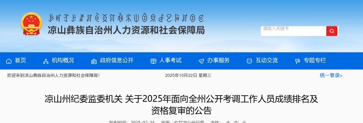 【2025年凉山州纪委监委机关考调工作人员成绩排名及资格复审的公告】相关岗位: