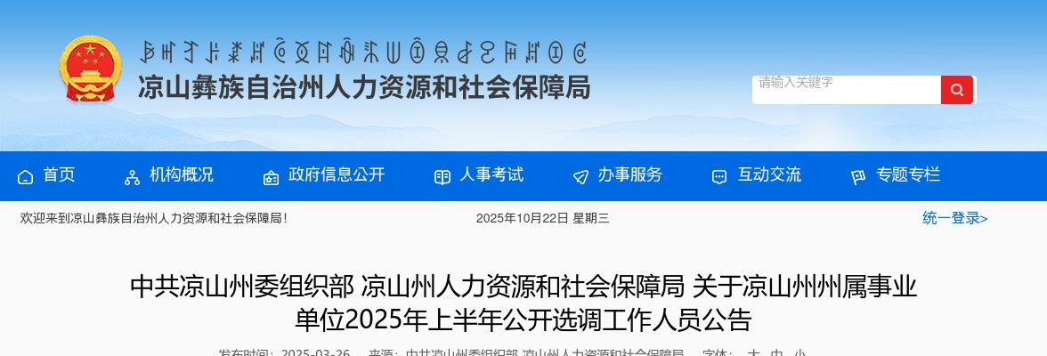 凉山州人力资源和社会保障局事管科 0834-2173682
