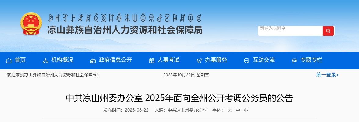 原标题:中共凉山州委办公室 2025年面向全州公开考调公务员的公告