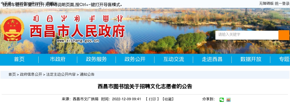 原标题:西昌市图书馆关于招聘文化志愿者的公告