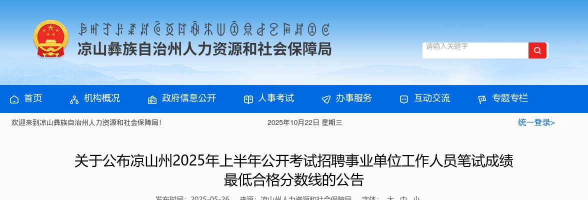 原标题:凉山州2025年上半年公开考试招聘事业单位工作人员笔试成绩最低合格分数线的公告